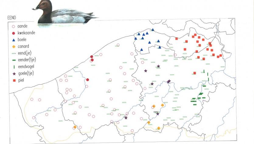 Onderstaande woordkaarten geven een overzicht van de dialectbenamingen voor een aantal vogels in de Vlaamse Dialecten. De meeste kaarten zijn gebaseerd op de gegevens uit de aflevering ‘Vogels’ (1996) van het Woordenboek van de Vlaamse Dialecten.